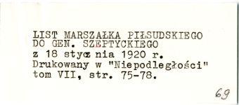 | Title | List Józefa Piłsudskiego do gen. Szeptyckiego |