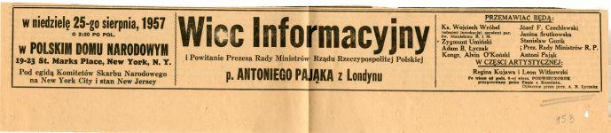 | Abstract | Informacja o wiecu informacyjnym z udziałem A. Pająka z Londynu. |