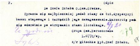 | Title | Odpisy akt operacyjnych i meldunków sytuacyjnych z obrony Wilna w dniach od 6 do 18 lipca 1920 roku |