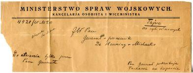 | Title | List Ministerstwa Spraw Wojskowych do Pana Generała De Henning-Michaelisa |
