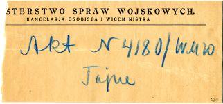 | Folder | Gabinet Ministra Spraw Wojskowych dekrety, referaty, sprawozdania, raporty |