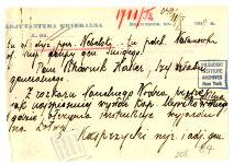 | Abstract | Depesza w sprawie wyjazdu na Łotwę i do Wilna. |